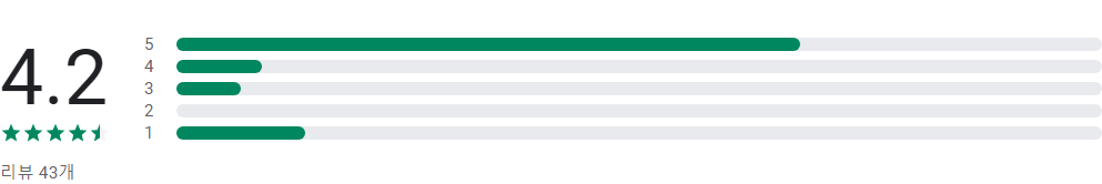 앱 평점 및 별표 1, 2, 3, 4, 5개 리뷰의 개수에 따라 표시되는 막대그래프는 앱의 평가 횟수가 매우 적은 경우가 아니라면 사용자 리뷰의 전체 기간 평균값이 아닌 앱의 현재 품질 평점을 바탕으로 합니다.