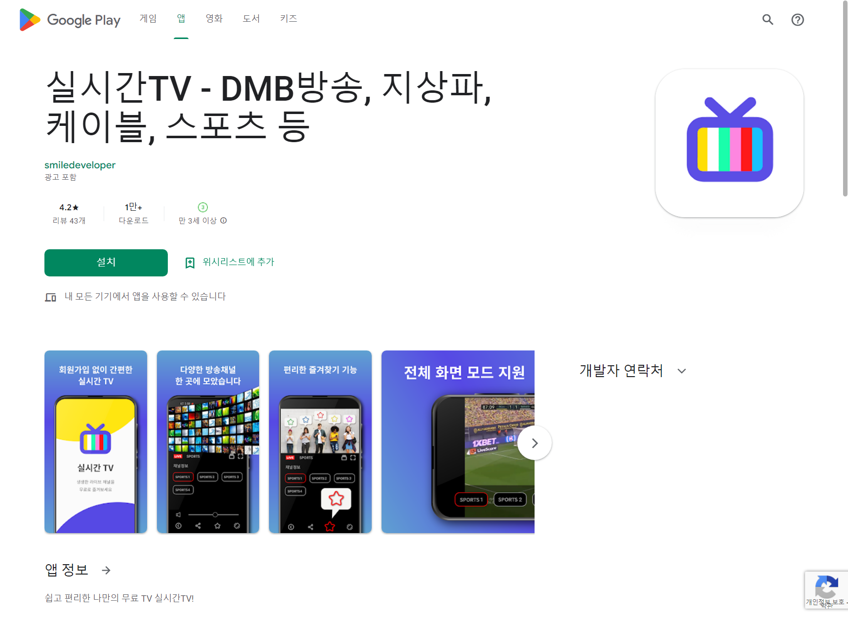 실시간TV - DMB방송, 지상파, 케이블, 스포츠 등 - Google Play 앱